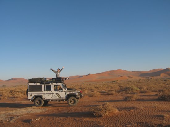 The alarm woke us up at 4:15. It was still pitch black out, stars shining brightly. But up we got, folded the tent and got Foxy fired up. We waited in line with the other dozen or so cars for the gate to open and then raced off into the dunes again for sunrise.